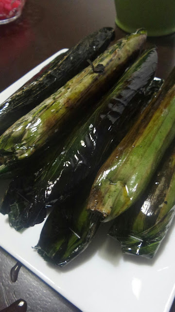 Macam dah raya.. ada lemang, ketupat nasi dan rendang daging.