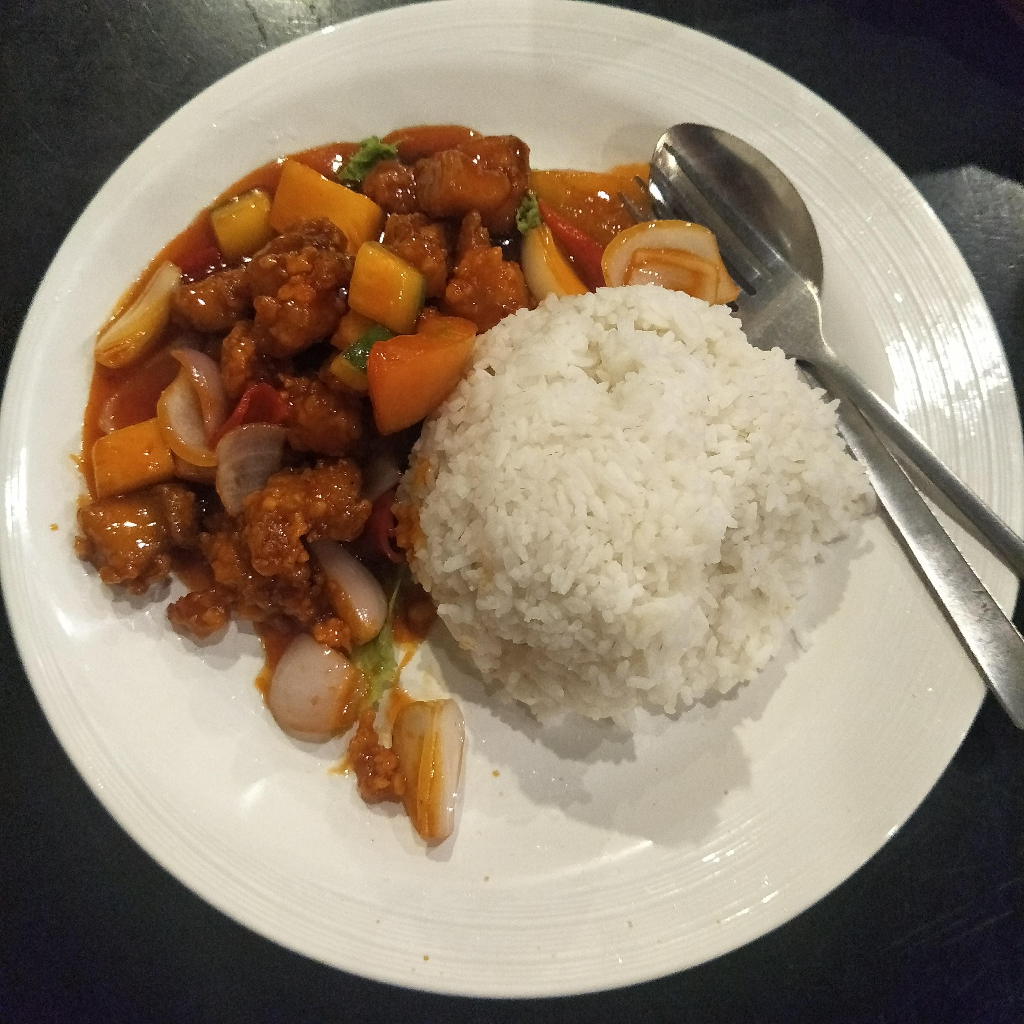 Iman peminat Ayam Masam Manis.. disajikan bersama nasi putih. Tak puas kalau tak makan nasi, kata Iman.