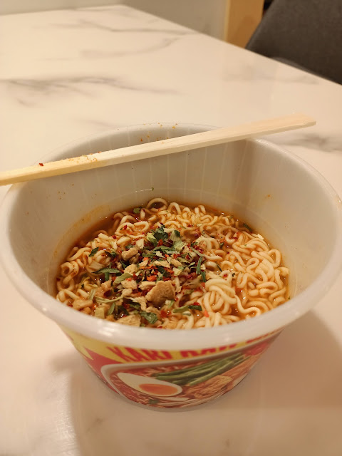 Masa bercuti ke Kuantan hari tu, singgah 7E beli maggi dalam mangkuk. Malam-malam.. sejuk-sejuk.. kan sedap makan maggi. Tapi.. maggi rendam air panas, tak sesedap maggi yang ditumis, hihi.