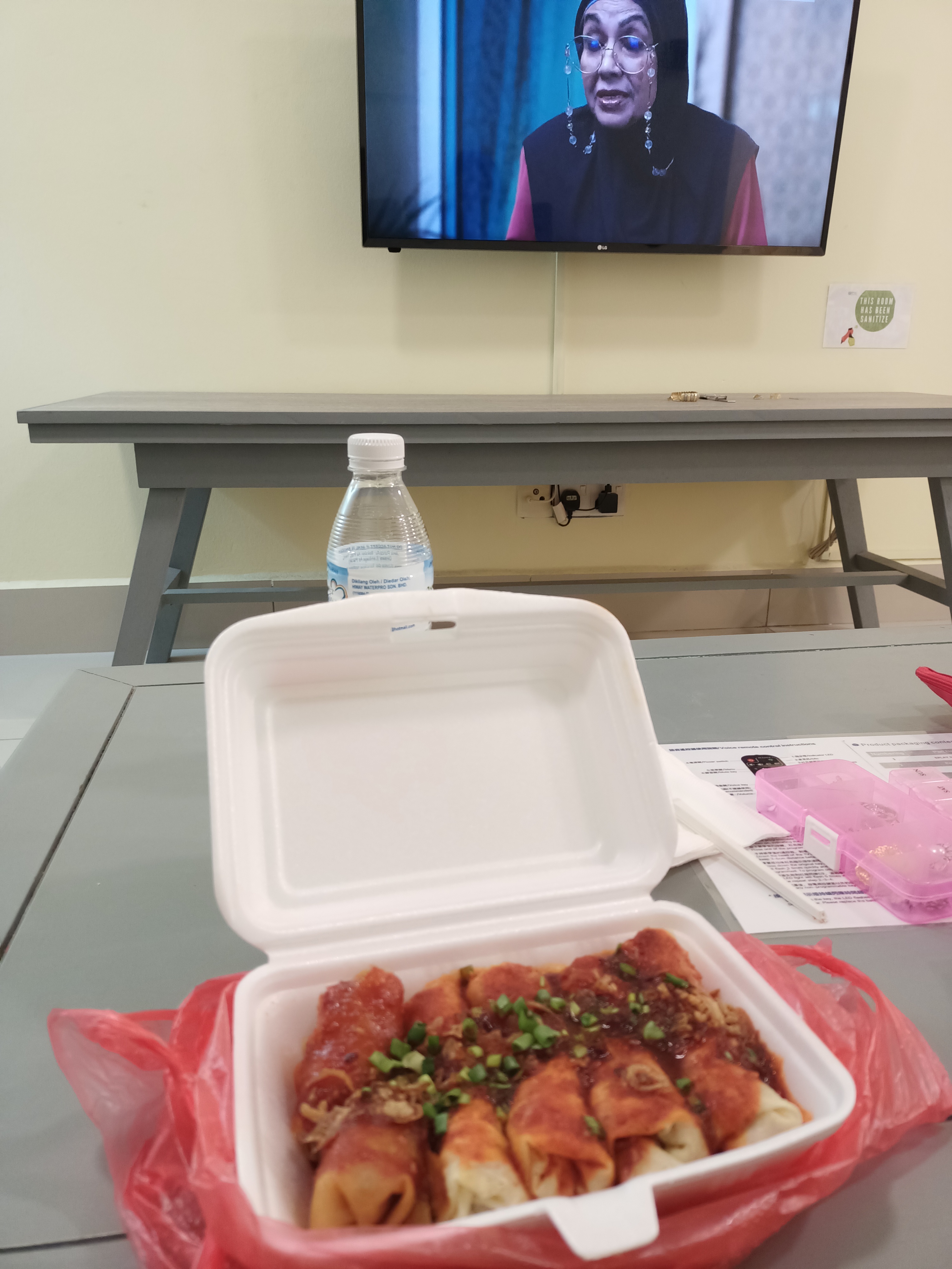 Sk dan Pak Inche makan Nasi Goreng. Iman tanak makan kecuali popiah.